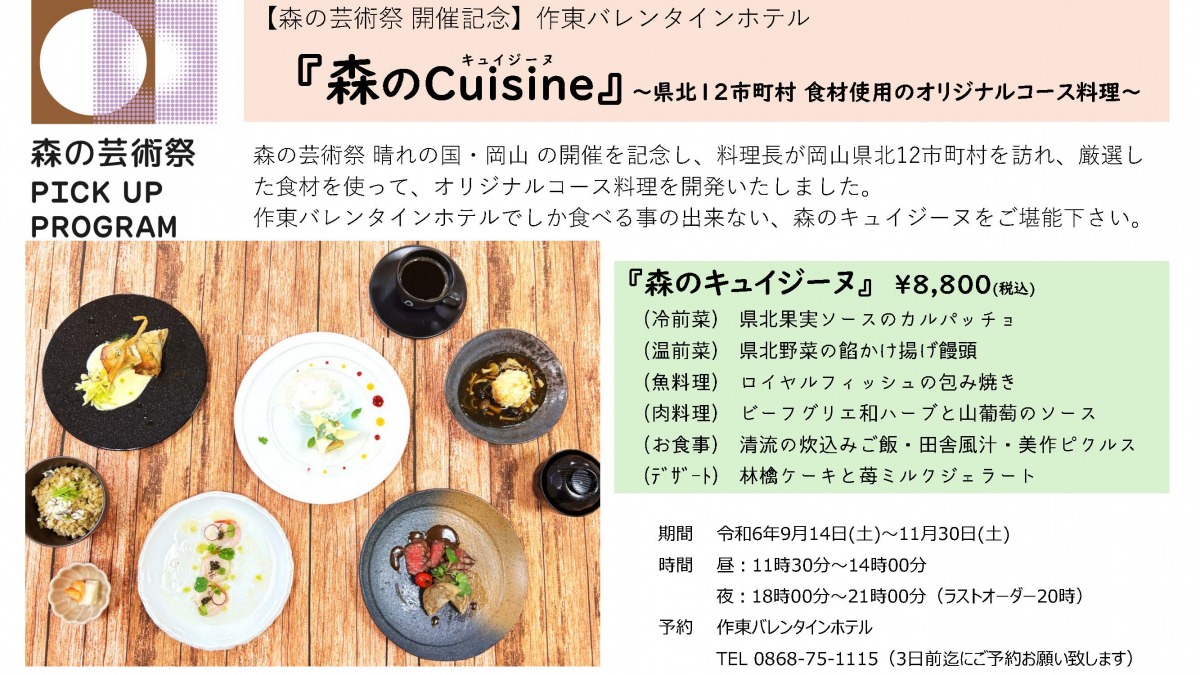 森の芸術祭 晴れの国・岡山の開催を記念し、料理長が岡山県北12市町村を訪れ、厳選した食材を使って、オリジナルコース料理を開発。