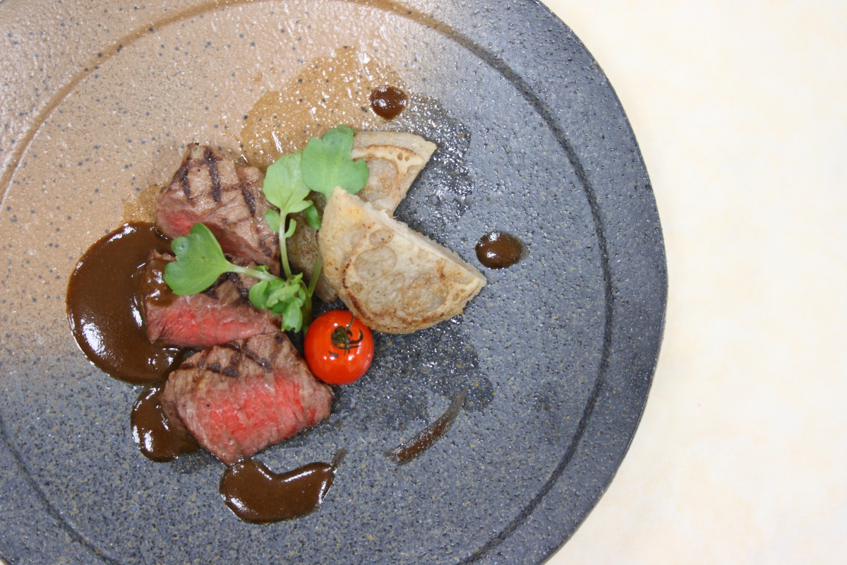 肉料理:ビーフグリエ和ハーブと山葡萄のソース