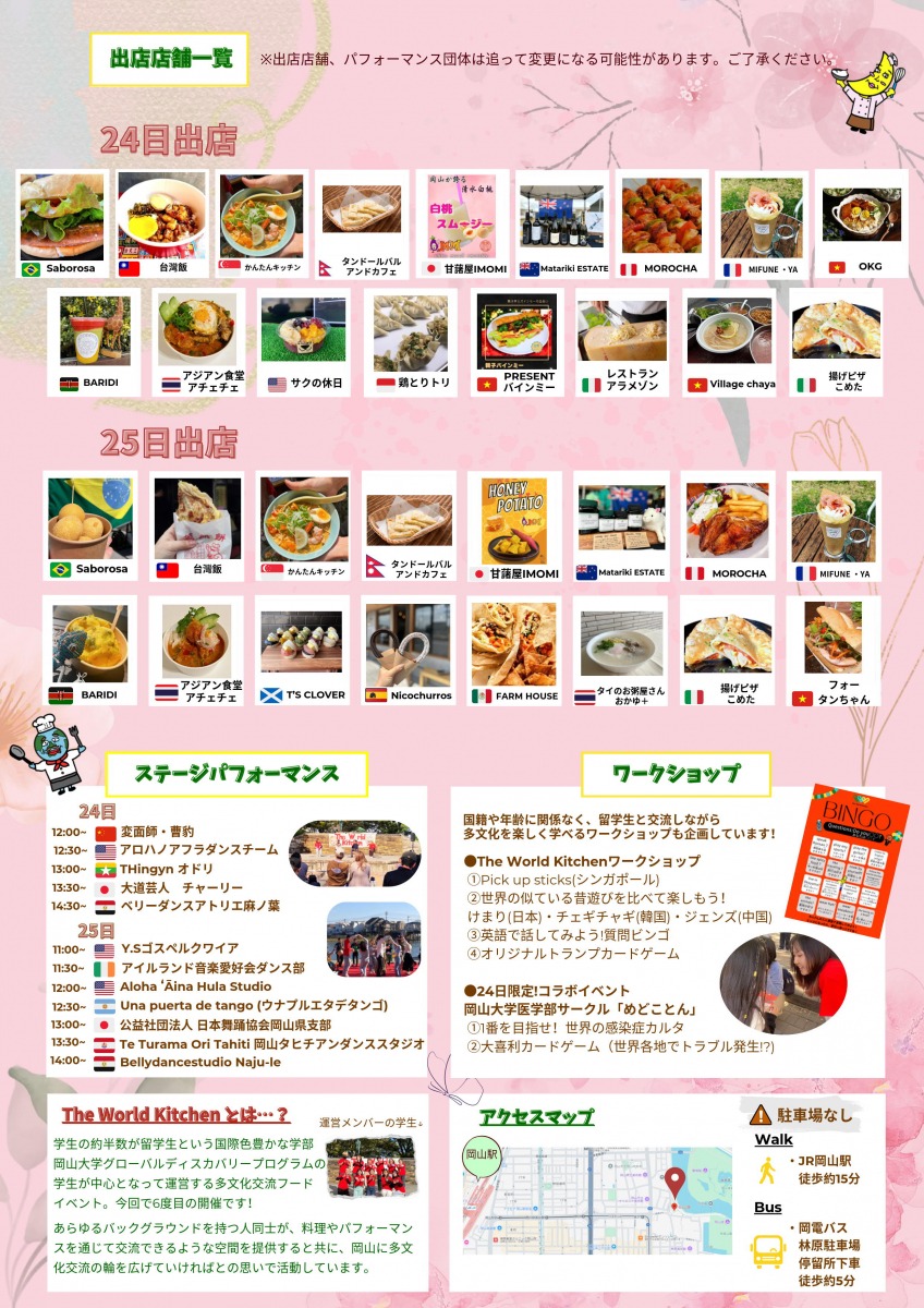 岡山に多様性の輪を拡げる多文化交流フードイベント「The World Kitchen 2025 in Spring」が開催されます。今回のテーマは「春のお花」です。