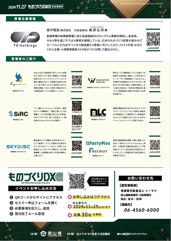 【要予約】晴れの国DXマッチングイベント ものづくりDX