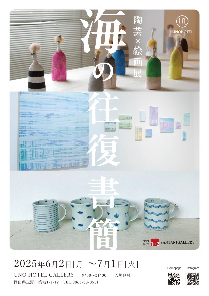 UNO HOTEL GALLERYにて、スギウラ工房と屋宜久美子による、陶芸×絵画展「海の往復書簡」が開催されます。