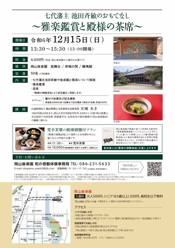 - 086-231-5633(岡山後楽園 和の感動体験事務局)