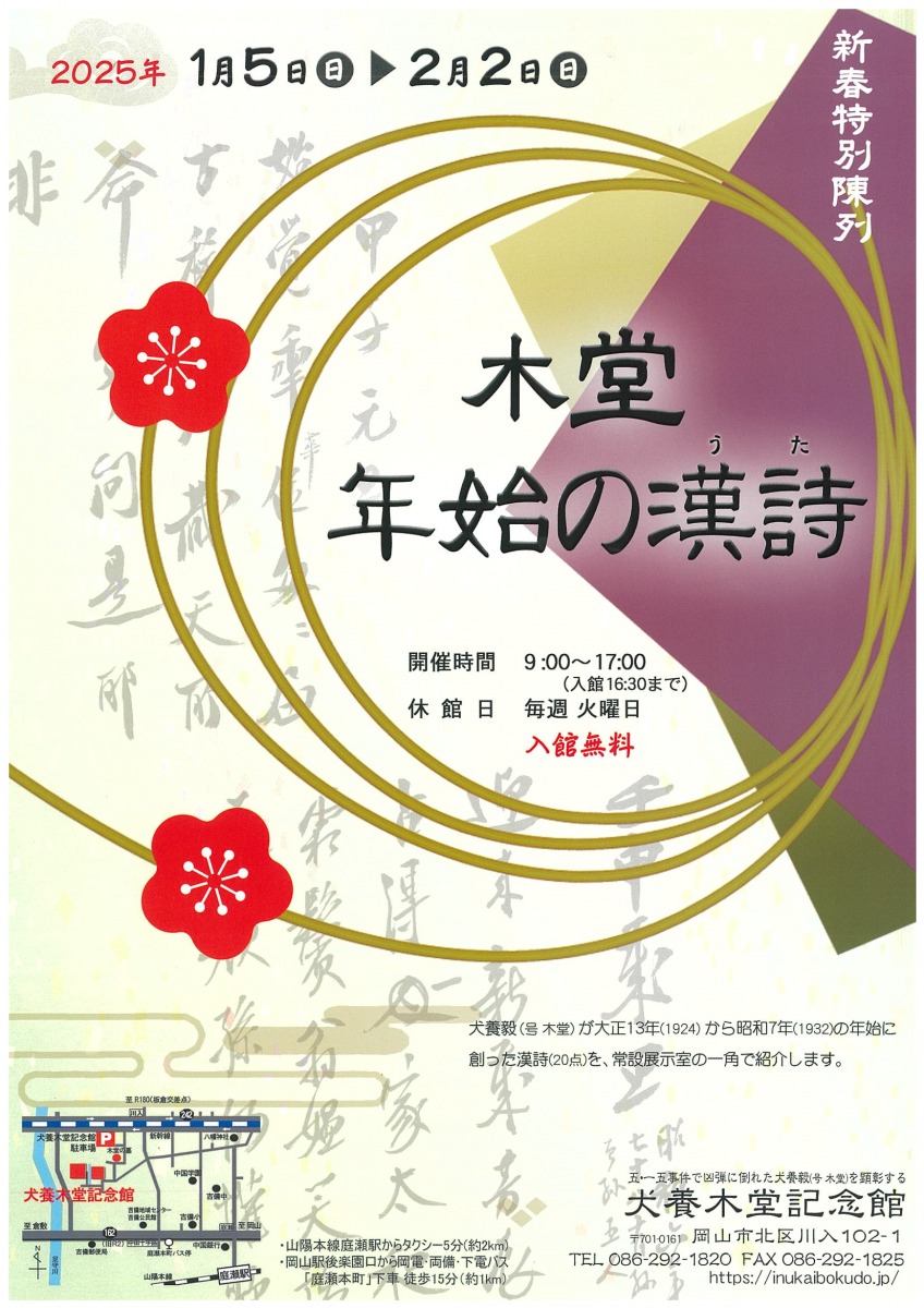 - 086-292-1820(犬養木堂記念館)