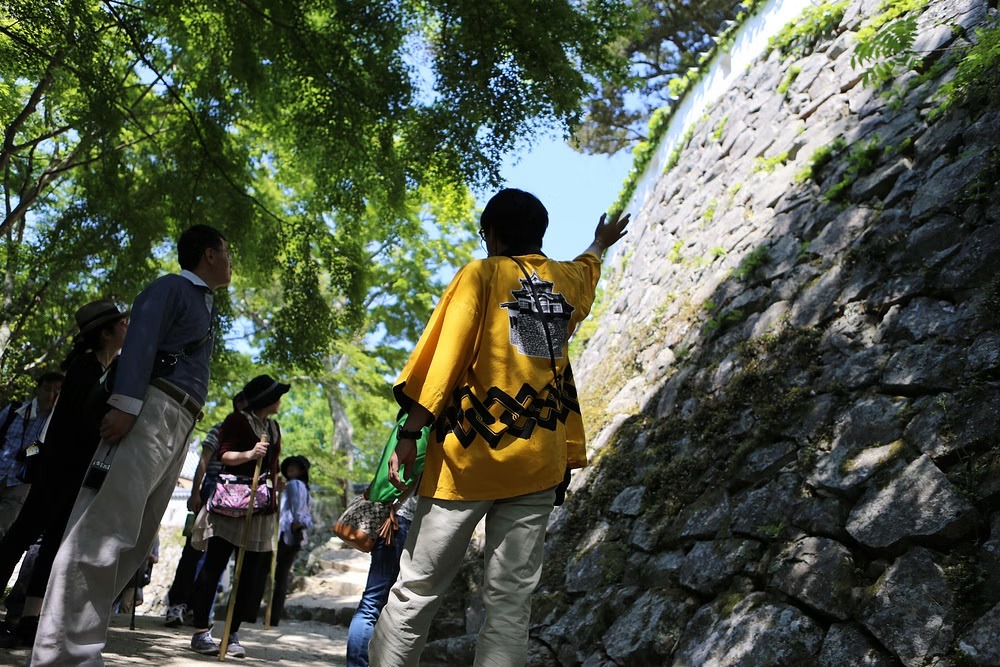 観光ガイド合流 ゆっくりと説明を加えながら徒歩登城スタート