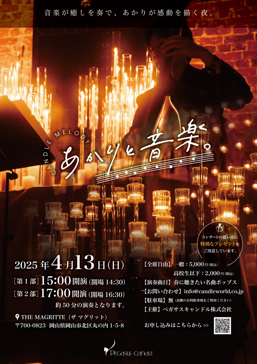 キャンドルのプロが手掛けたリアルな灯りと、美しく奏でられる春のメロディが織りなすハーモニー。春爛漫の季節にふさわしい選曲で、心華やぐ音楽が届けられます。キャンドルの光に包まれながら、春の訪れを感じる特別な一夜を楽しめます。