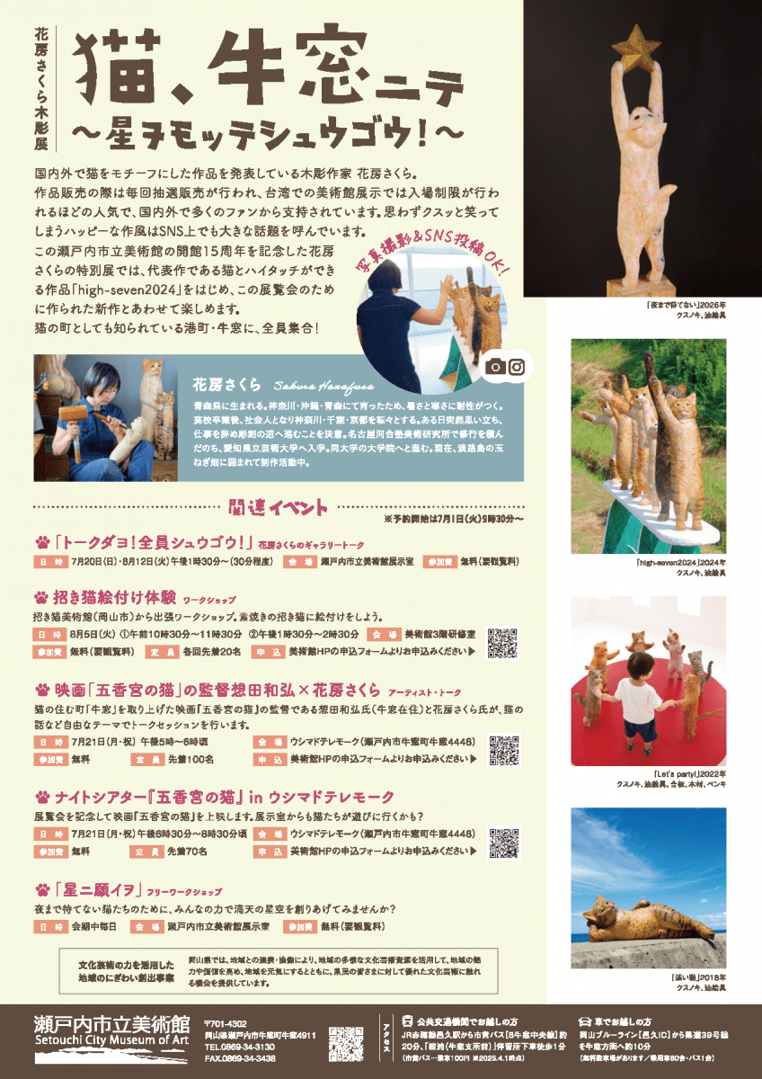 【瀬戸内市立美術館】花房さくら木彫展「猫、牛窓ニテ ~星ヲモッテシュウゴウ!~」
