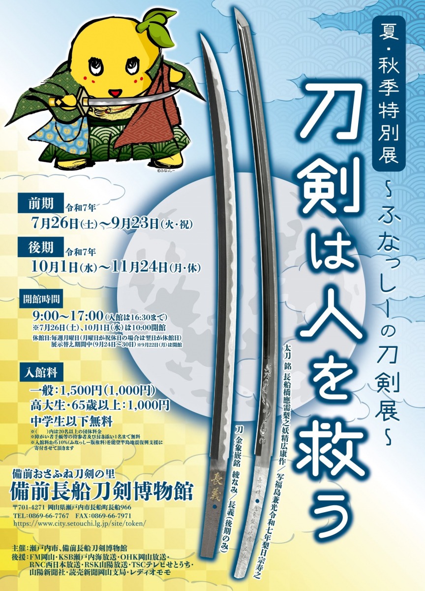 【備前長船刀剣博物館】特別展「刀剣は人を救う ~ふなっしーの刀剣展~」