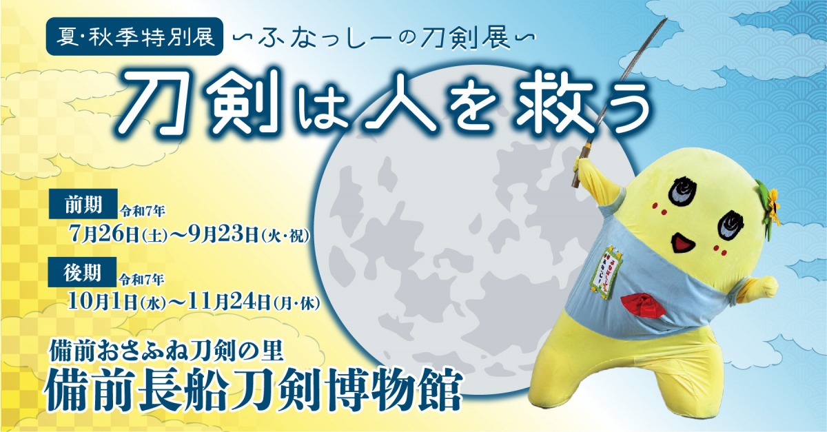 備前長船刀剣博物館にて「刀剣は人を救う ~ふなっしーの刀剣展~」が開催されます。