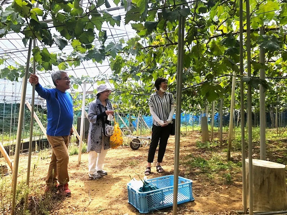 農家さんとの談話も収穫体験の醍醐味です。ぶどう育成のための苦労話や経験談、美味しいぶどうの見分け方など尋ねてみてください。