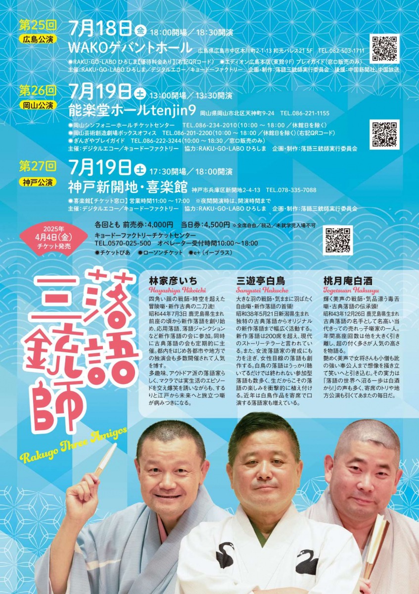 能楽堂ホールtenjin9「第26回 落語三銃師ー白鳥・彦いち・白酒ー」