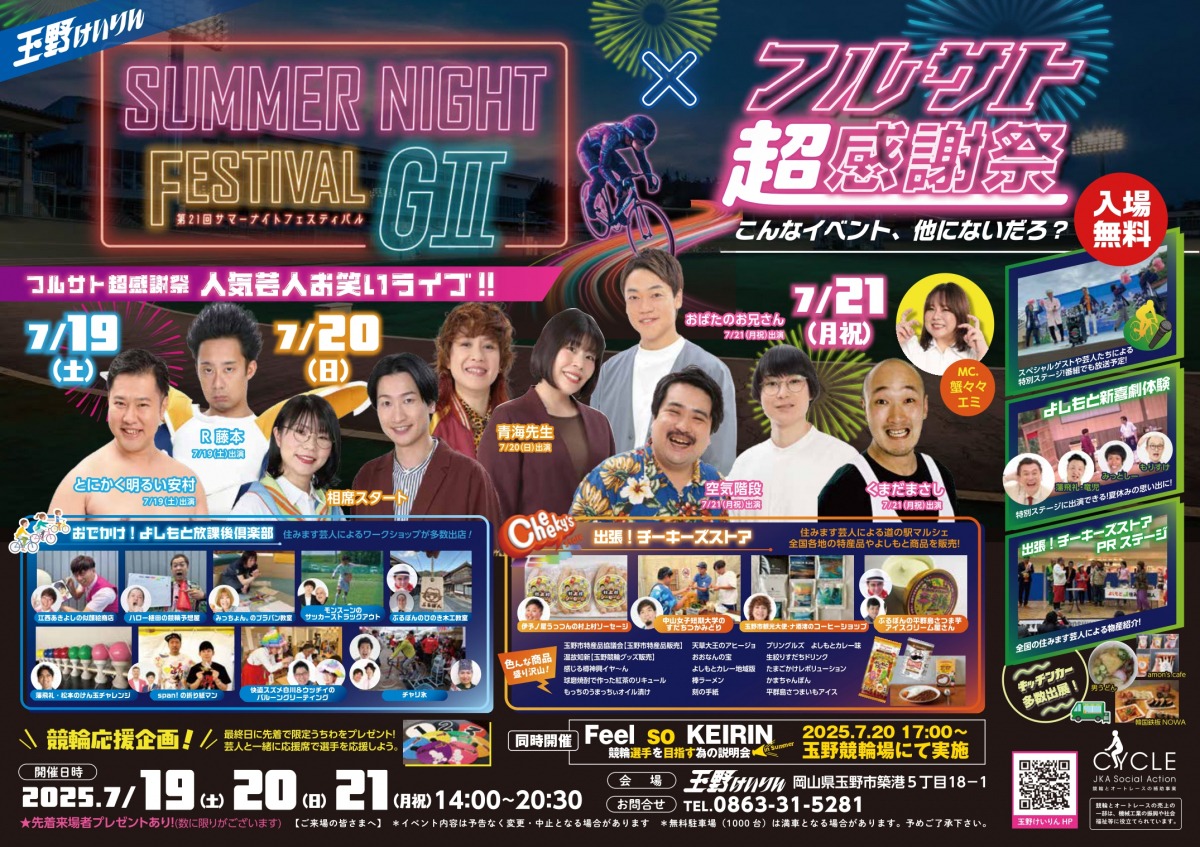 玉野競輪場にて「サマーナイトフェスティバル×フルサト超感謝祭」が開催されます。