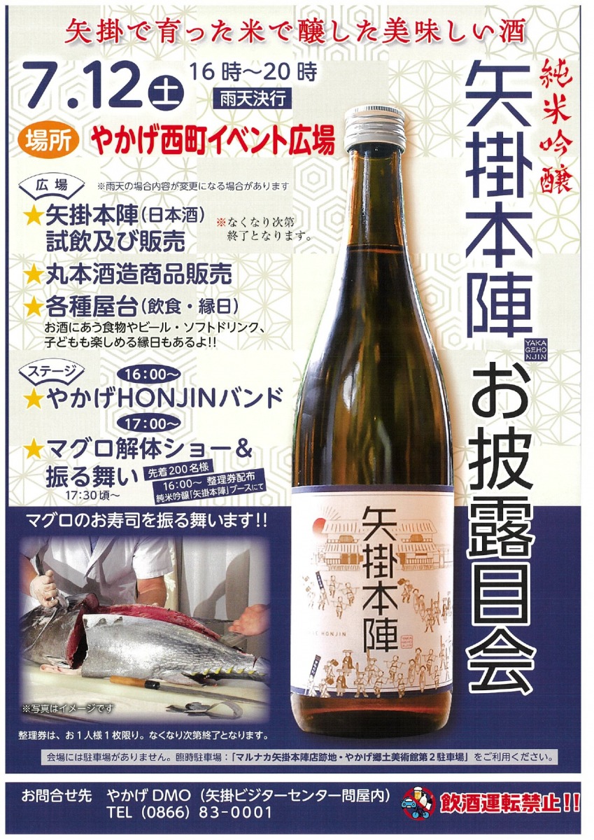 当日は、試飲はもちろん、蔵元である丸本酒造のお酒販売、グルメ屋台、地元人気バンド《やかげHONJINバンド》によるライブ演奏、そして迫力満点の「マグロの解体ショー&ふるまい」を実施!