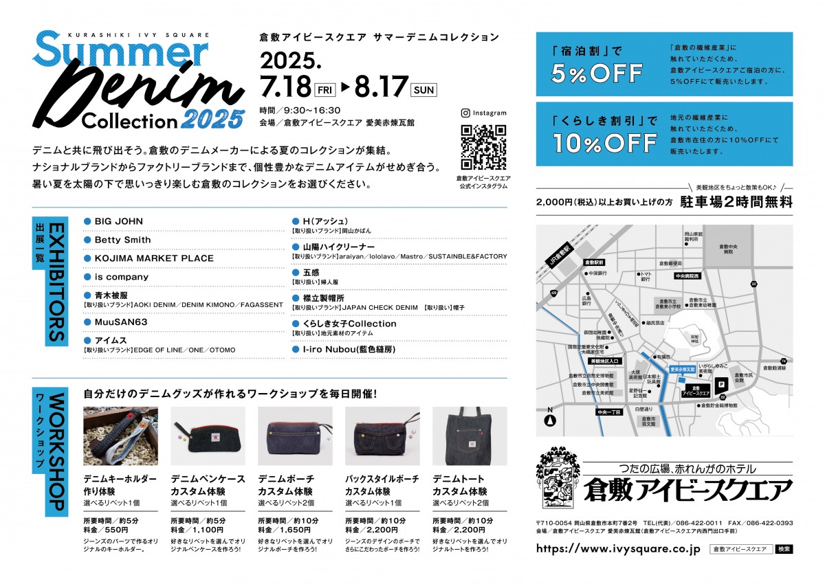 倉敷アイビースクエアの愛美赤煉瓦館にて「Summer Denim Collection 2025」が開催されます。倉敷のデニムメーカーによる夏のコレクションが集結。ナショナルブランドからファクトリーブランドまで、個性豊かなデニムアイテムがせめぎ合います。暑い夏を太陽の下で思いっきり楽しむ倉敷のコレクションを選ぶことができます。