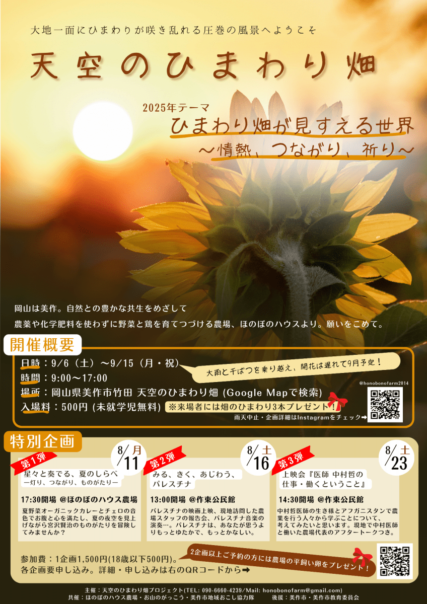 - 090-6660-4239(天空のひまわり畑 事務局(ほのぼのハウス農場))