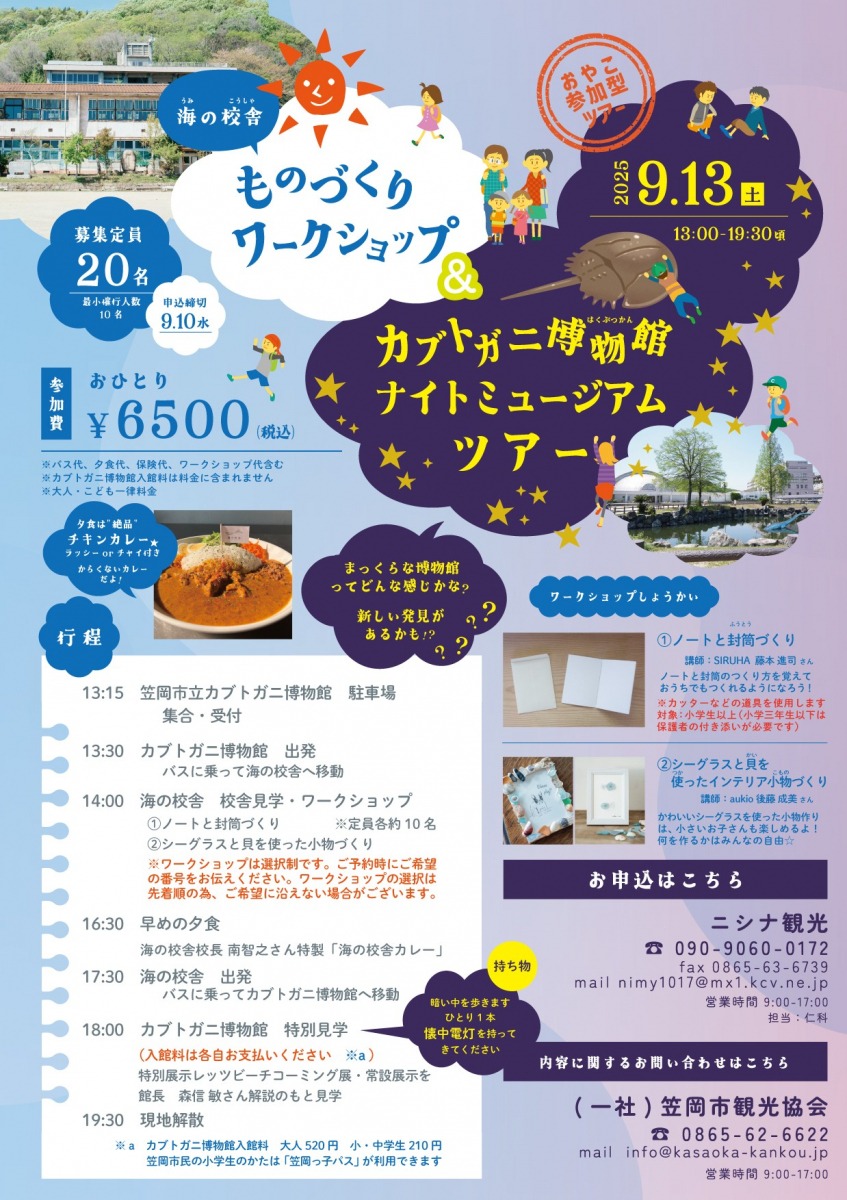 【要予約】海の校舎ものづくりワークショップ&カブトガニ博物館ナイトミュージアムツアー