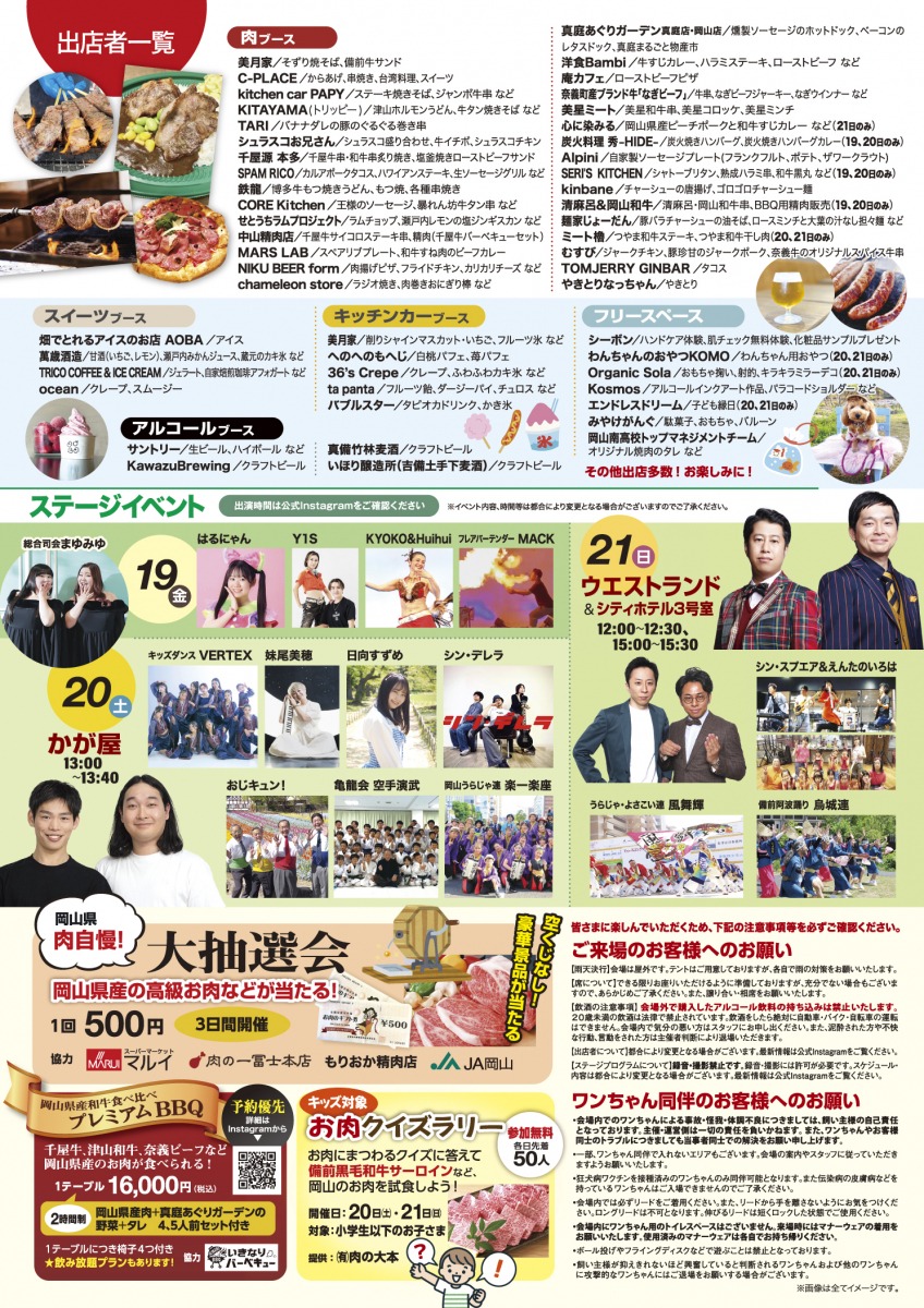 千屋牛、津山和牛、美星ポーク、森林どりなどを自分で焼いて楽しめる特設 BBQ ブースが登場。