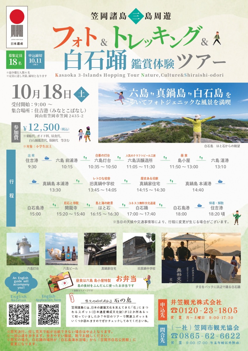 【要予約】笠岡諸島3島周遊 フォト&トレッキング&白石踊鑑賞体験ツアー