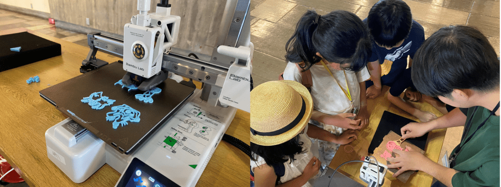 8月に実施したワークショップで、子どもから大人まで多様な参加者が描いた空想の動物たち。それらが3Dプリンターで大きく立体化され、建物や庭のあちこちにひそみます。ワークショップに参加された方の作品だけでなく、アーティストの原田 明夫氏(倉敷芸術科学大学准教授)の作品も展示予定。
