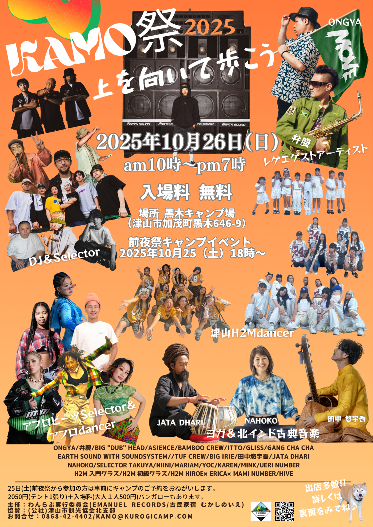 県北の山に囲まれ水がキレイな町、加茂町のキャンプ場にて、音楽イベント「KAMO祭」が開催されます。
