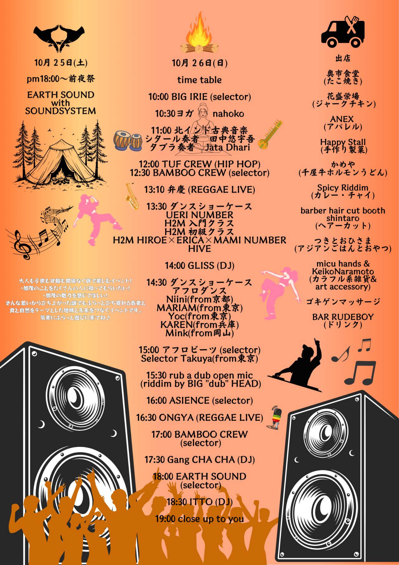 岡山で活躍中のレゲエセレクターEarthSoundが本格的なサウンドシステムから最高に楽しい空間を作りあげてくれます。