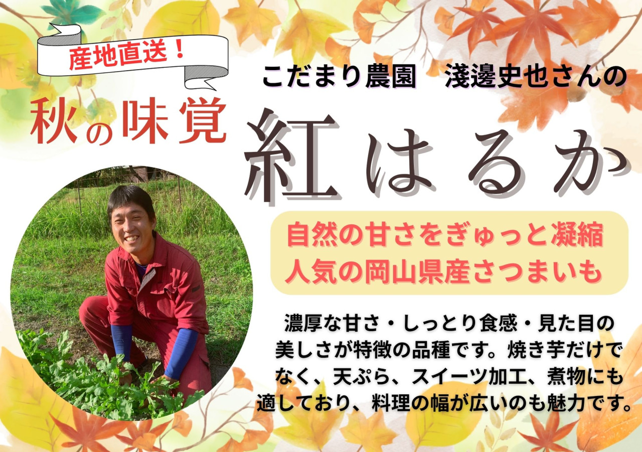「こだまり農園」の紅はるかを直送。濃厚な甘さ・しっとり食感・見た目の美しさが特徴の品種です。焼き芋だけでなく、天ぷら、スイーツ加工、煮物にも適しており、料理の幅が広いのも魅力です。