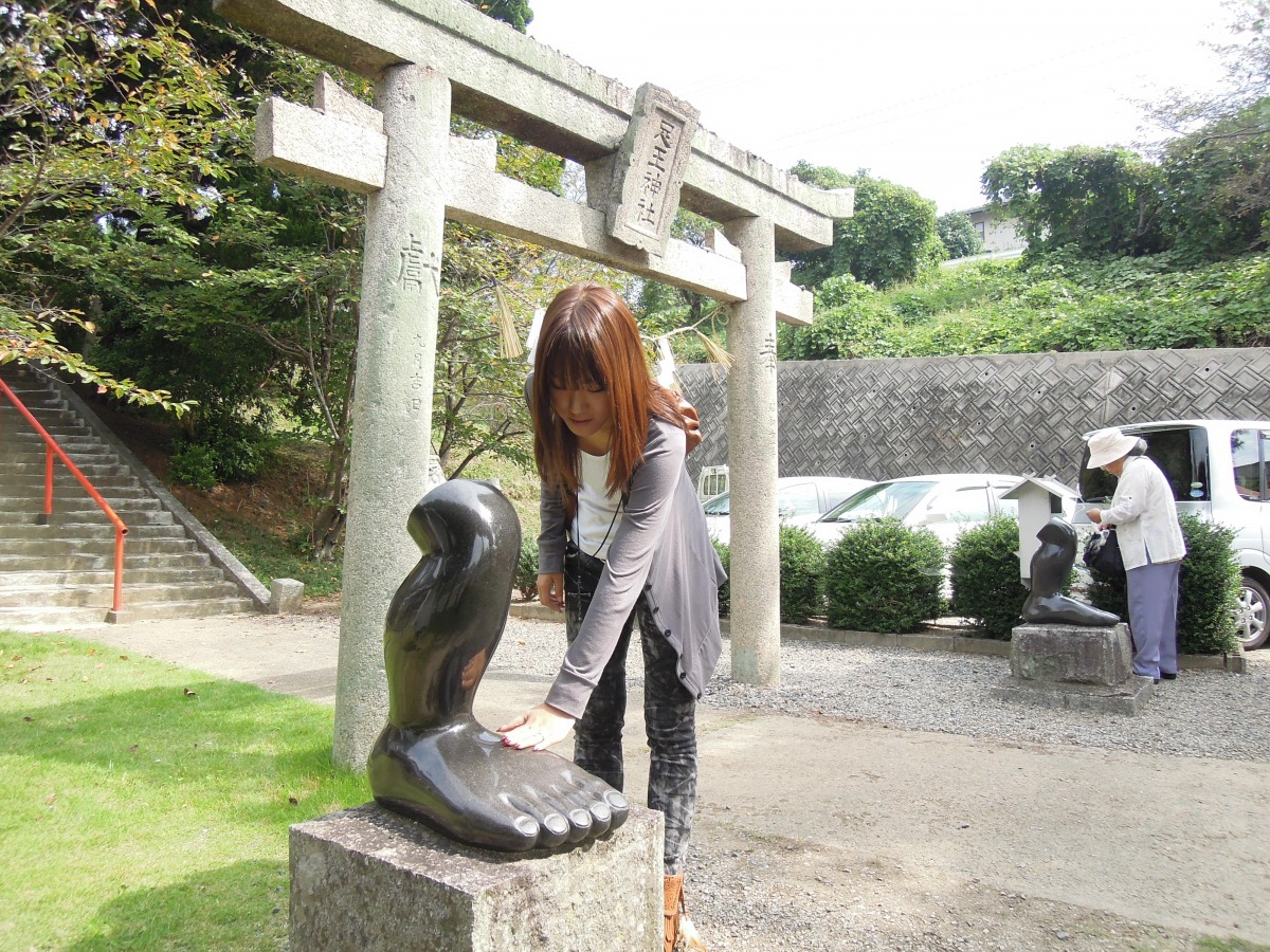 「足の神様」として信仰され、鳥居のそばに焼物の脛から下の足形がおかれており、これをさわって手で患部をなでると病が治るとされています。