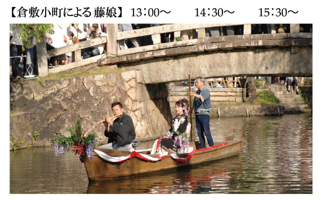 倉敷美観地区を中心とした白壁の町並み、倉敷川のロケーションを活かした期間限定のイベントです。倉敷小町による瀬戸の花嫁や倉敷小町による藤娘などが行われます。