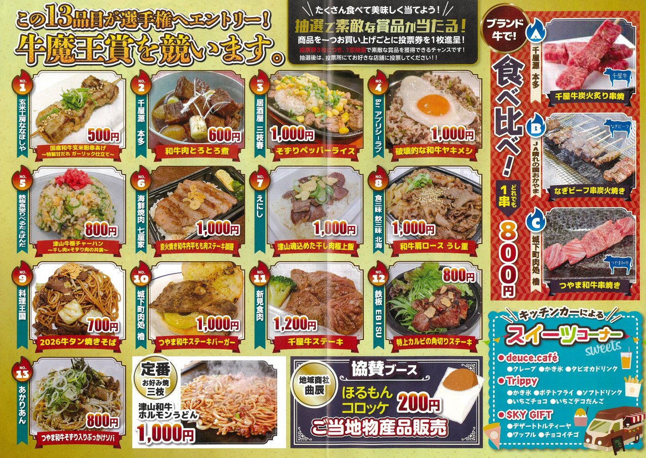 この聖地を舞台に牛肉料理で味を競い合い、投票等により優勝者が決定されます。毎年味自慢のお店が多数参戦、様々なおいしい牛肉料理が食べられるイベントです。