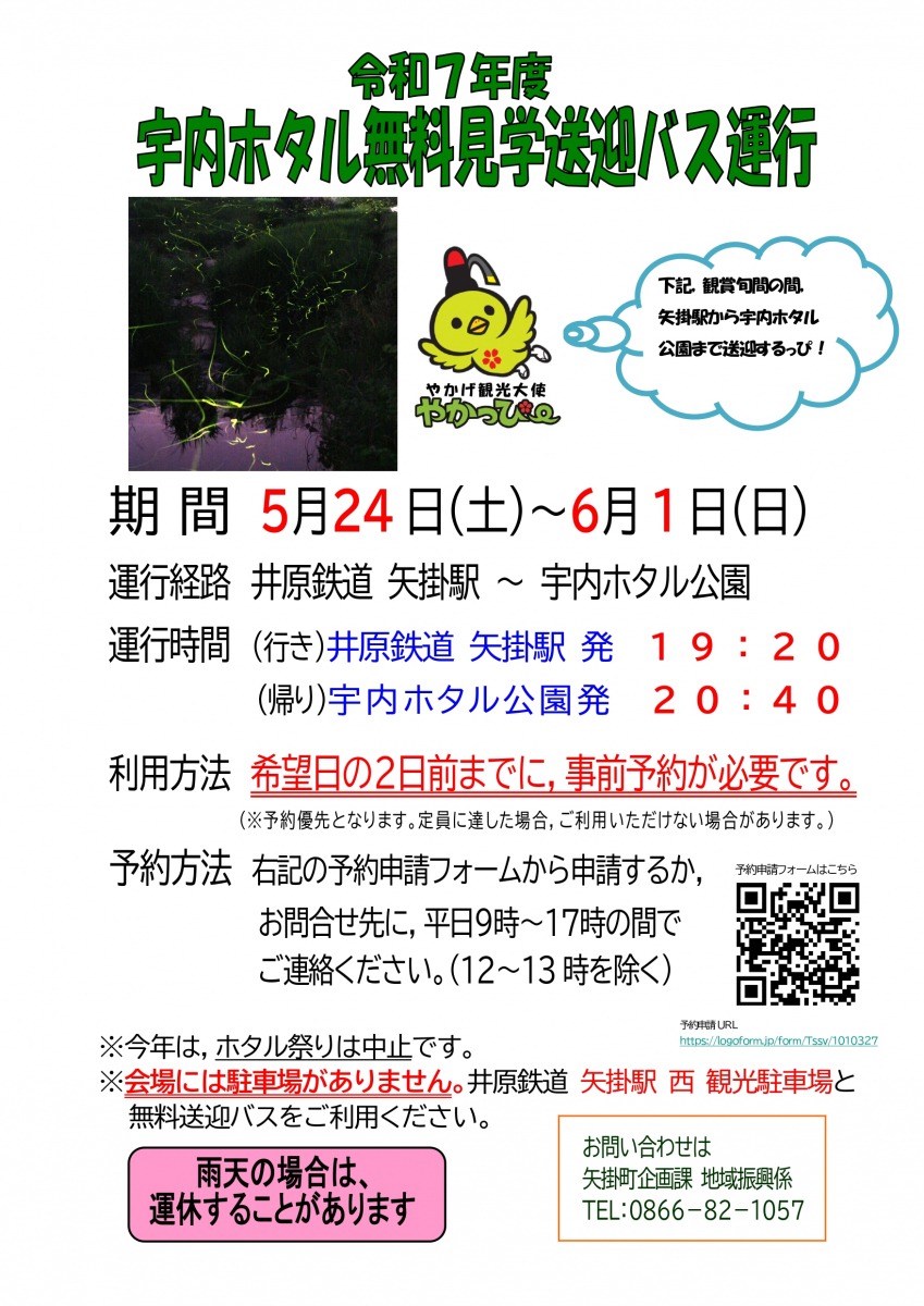 - バス運行(要予約)/井原鉄道矢掛駅~宇内ホタル公園