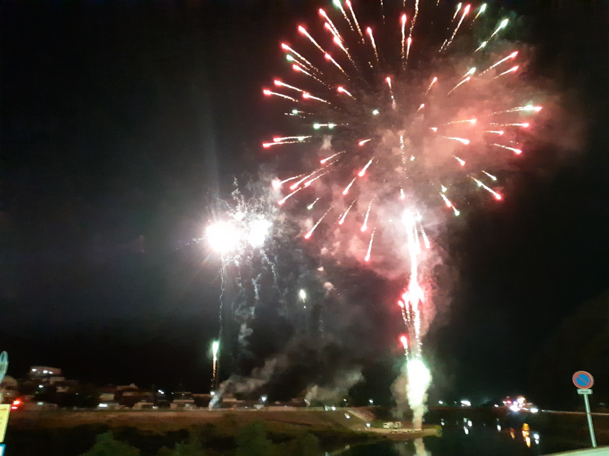 湯郷温泉街から北へ1kmほどの入田地区で開催される花火大会です。目の前の吉野川河川敷から打ち上がる、夏の夜空を彩る花火は迫力満点!