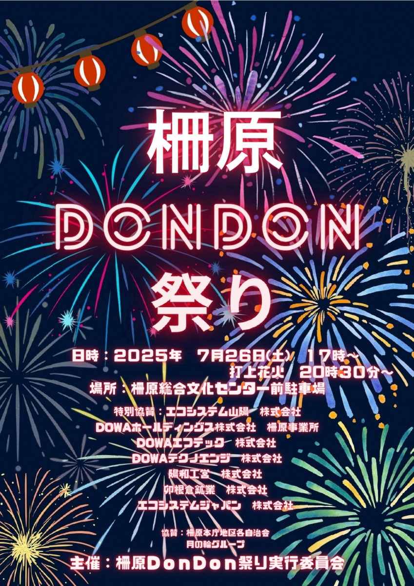 美咲町柵原総合文化センターの駐車場で開催される夏のイベント。会場にはたくさんの屋台が出店します。楽しいステージイベントや打上花火もあります。