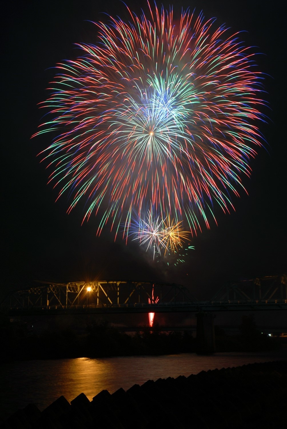 旭川を舞台に打上げられる花火大会は落合地区の夏の風物詩。夜空に繰り広げられる約2,500発の打上げ花火と仕掛け花火は、県北最大級を誇る華麗な光のイリュージョンです。