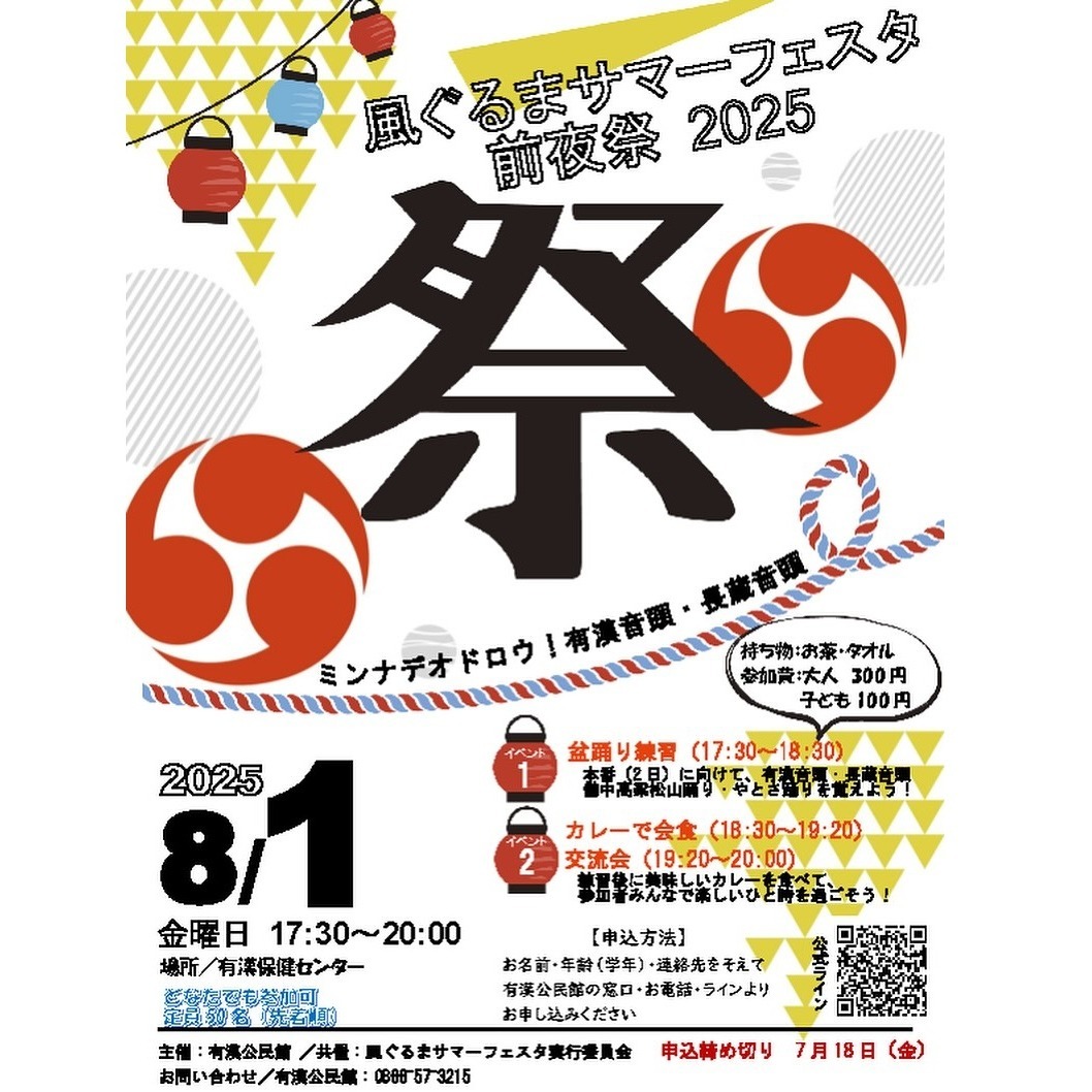- 0866-57-3215(有漢町納涼ふるさと祭実行委員会【有漢公民館】)