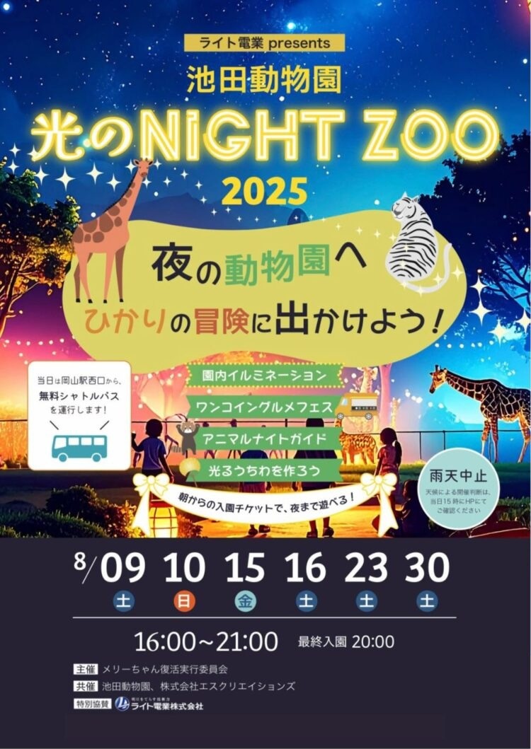 毎年開催されているナイトズーイベント。今年のナイトズーのテーマは”光”。様々な光が園内を優しく照らします。