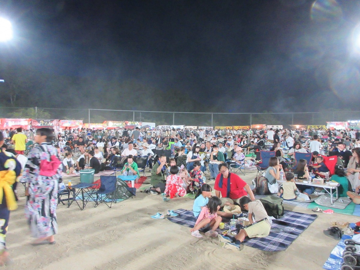 地元団体や商店による飲食の出店で賑います。花火の打ち上げは20:45~21:00(予定)。約1,800発が夜空を彩ります。