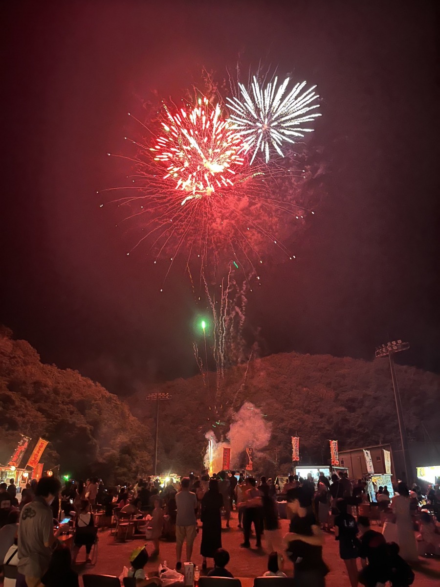 英田多目的グラウンドで毎年開催されているまつり。お楽しみ抽選会や夜店が並び賑わうほか、約1,100発の花火がフィナーレを飾ります。
