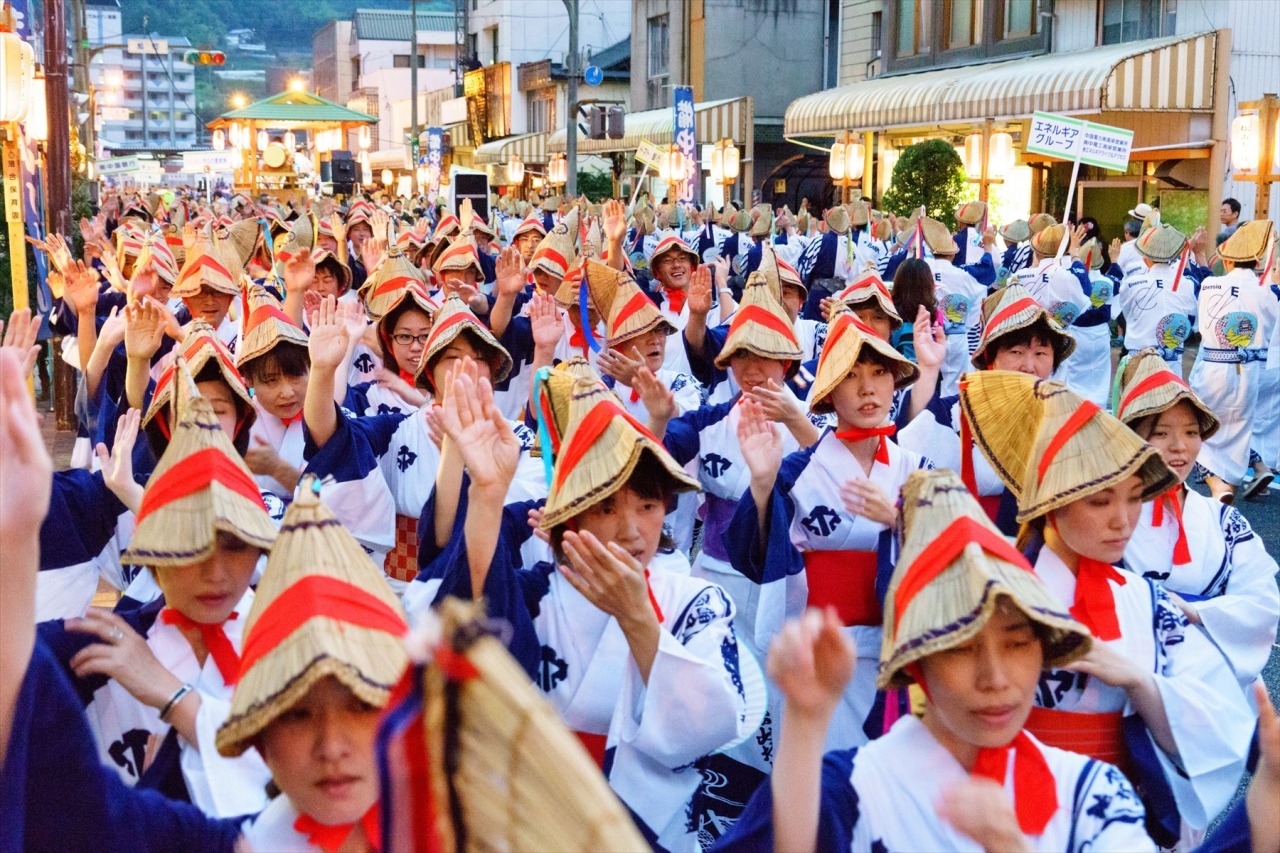岡山県下3大踊りのひとつで、県下最大の規模を誇る備中たかはし松山踊り。期間中、JR備中高梁駅前は踊り一色に染まります。3日間通して踊られる「松山踊り(地踊り)」「ヤトサ踊り」は参加型の踊りで、誰でも踊りの輪に入っていただけます。初めて踊りに参加した人もたちまち虜になること間違いなし!