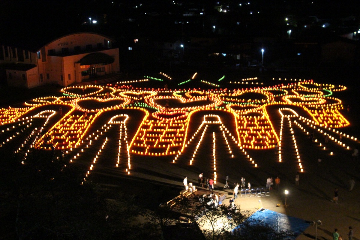 中学校エリア:灯の地上絵、三石小学校、片上小学校児童、三石こども園園児による「キャンドルナイト絵画展」を開催、中学生による作品展示