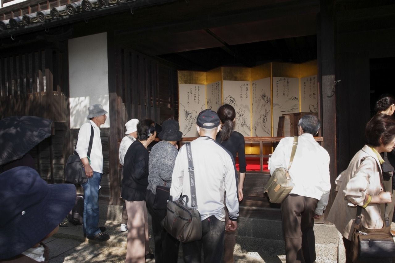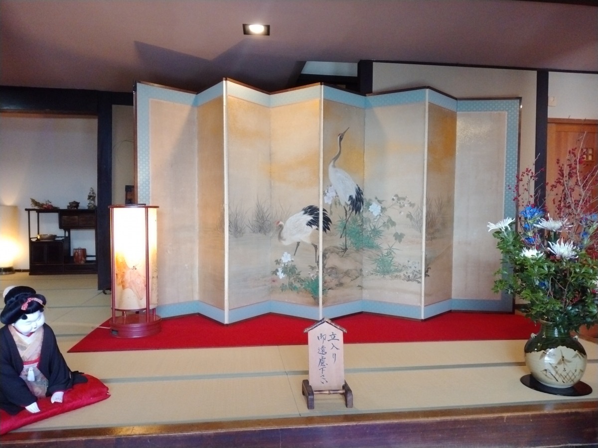 往時の町並みの姿を色濃く残す本町から東町にかけての約30軒が、通りに面する格子戸を開け放ち、先祖伝来の屏風や各家の自慢の家宝を展示し、花を活けておもてなしします。
