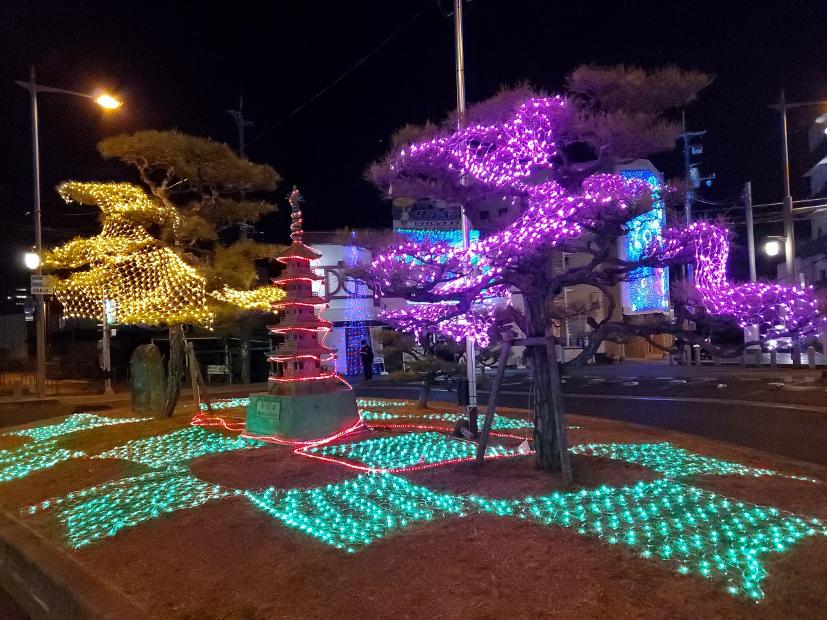 総社駅前から市役所通り周辺を個性豊かなイルミネーションで彩ります。