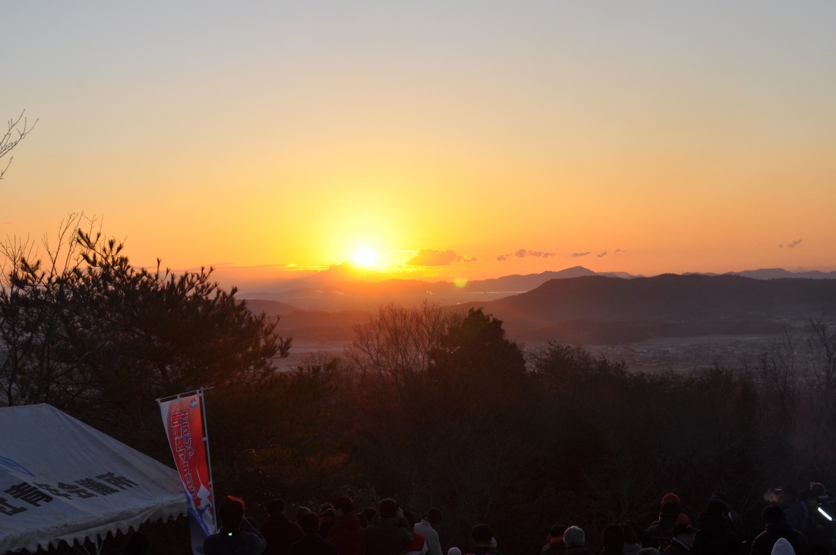 秋葉山では元日の朝に初日の出参拝式が開催されています。来場者には、豚汁とおにぎりを配布予定です。