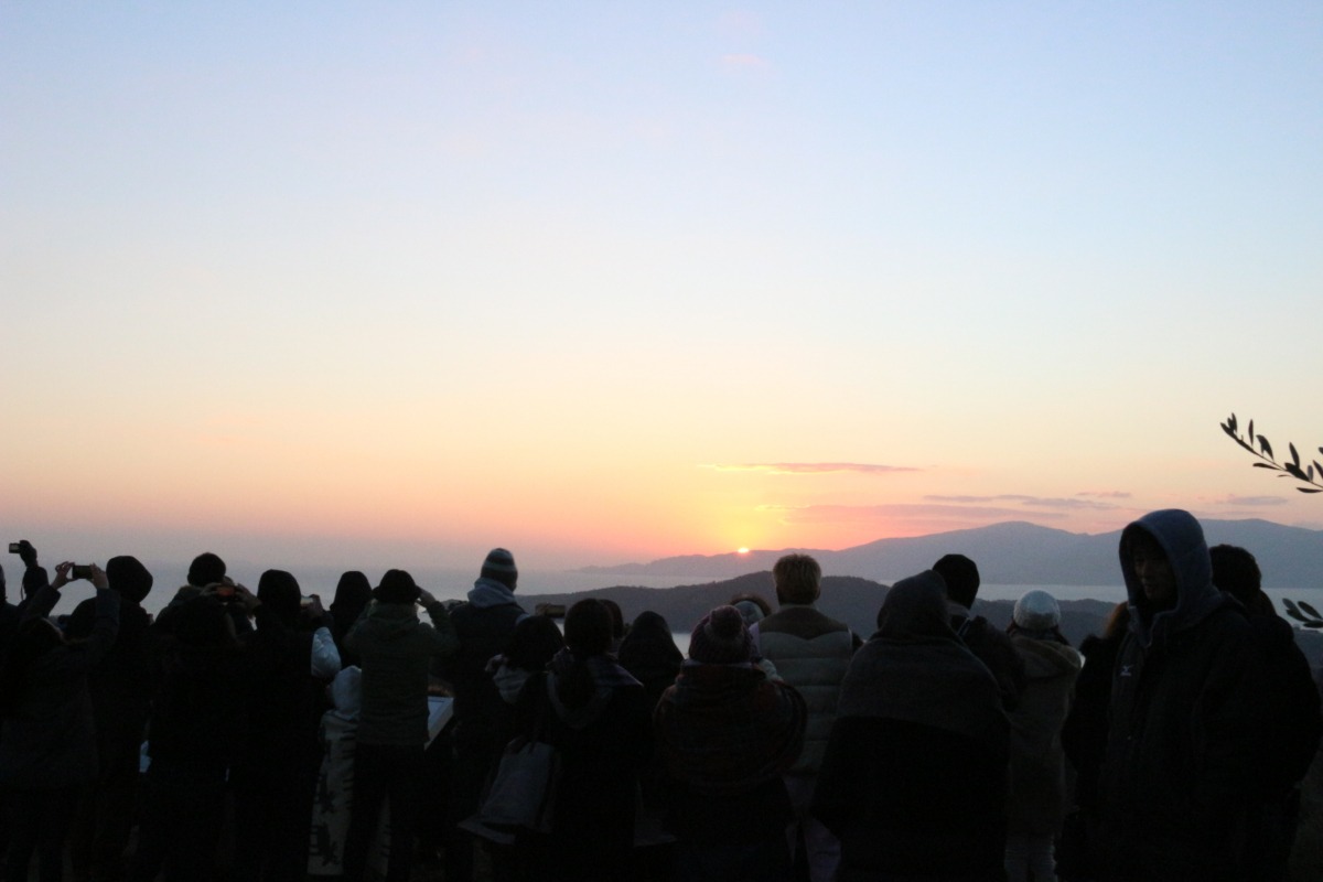 牛窓オリーブ園で、初日の出の鑑賞会が開催されます。素敵な年の始まりをオリーブ園で迎えてみませんか。オリーブショップや山の上のロースタリ(カフェ)もお楽しみいただけます。