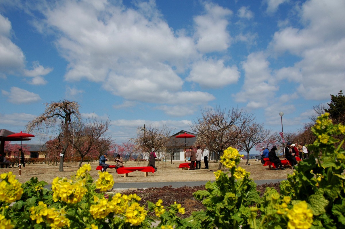 春の訪れとともに、紅梅・白梅・しだれ梅が咲き継ぎ、500本もの競演を楽しめます。さまざまなイベントも催され、大勢の人で賑わいます。