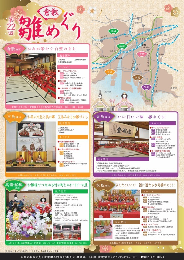 - 086-421-0224(倉敷雛めぐり実行委員会事務局/倉敷観光コンベンションビューロー)