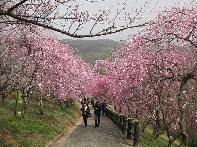 紅白あわせて14種の梅の木が植栽されている津山市神代梅の里公園では、例年2月下旬から3月下旬にかけて美しい花を咲かせます。