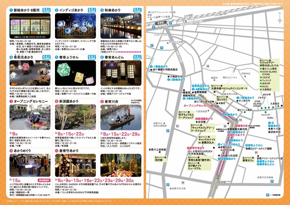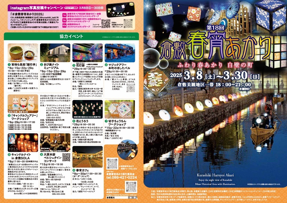 倉敷に春の訪れをつげる夜のイベント「倉敷春宵あかり」。倉敷美観地区一帯をやさしくあたたかなあかりで演出し、皆様に春の宵をお楽しみいただくイベントが今年も開催されます。
