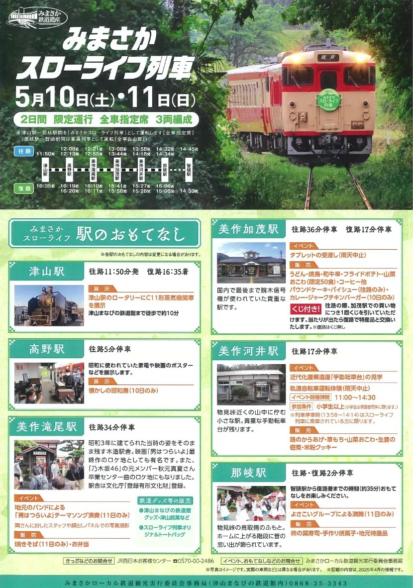 因美線をゆったりと走る「みまさかスローライフ列車」が、2日間限定運行。