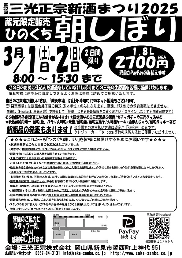 第22回 三光正宗 新酒まつり 2025「限定販売 ひのくち朝しぼり」