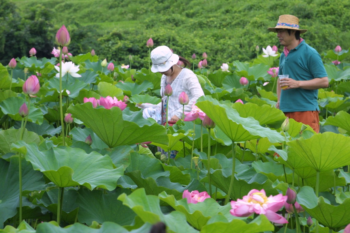 60アールの休耕田で栽培されているはすの花が、ピンクや白の大輪の花を咲かせます。この時期には涼を求める多くの観光客が訪れ、散策などを楽しんでいます。はすの花は7月いっぱいまでが見頃で、午前7時から午前10時頃までが最も美しく花開く時間帯です。ステージイベントや模擬店の出店も行われます。