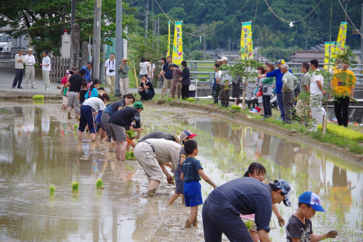 「能登香の里」での田植えは長年守り続けてきた「神事」。秋の豊作をお願いし、子供も大人もみんな一緒に田んぼに入って苗の手植えを体験しませんか。